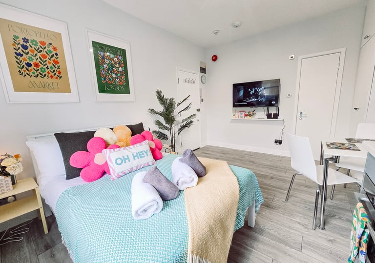This studio is more than just a place to sleep — it’s fully equipped to support your stay from day one. Cook at home in the well-stocked kitchen, stream your favourite shows with fast Wi-Fi and a smart TV, and enjoy the little extras like fresh towels, an iron, hairdryer, and welcome snacks. Whether you're staying a few nights or a few weeks, everything you need is right here.